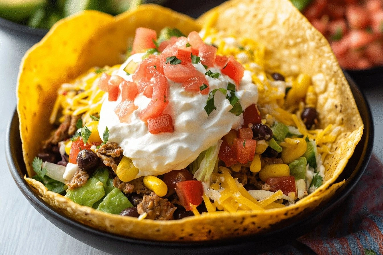 The night before my best friend’s birthday party, I was scrambling to create something that would wow the crowd. I had a stack of taco shells, a bag of ground beef, and an inexplicable craving for something crunchy and creamy. The kitchen smelled like a fusion of Mexican street food and comfort‑food nostalgia. I dared myself to turn a humble taco salad into a showstopper, and the result was a bowl that practically sang with flavor. If you’ve ever felt the pressure to deliver a dish that’s both simple and spectacular, you’re in for a treat.
